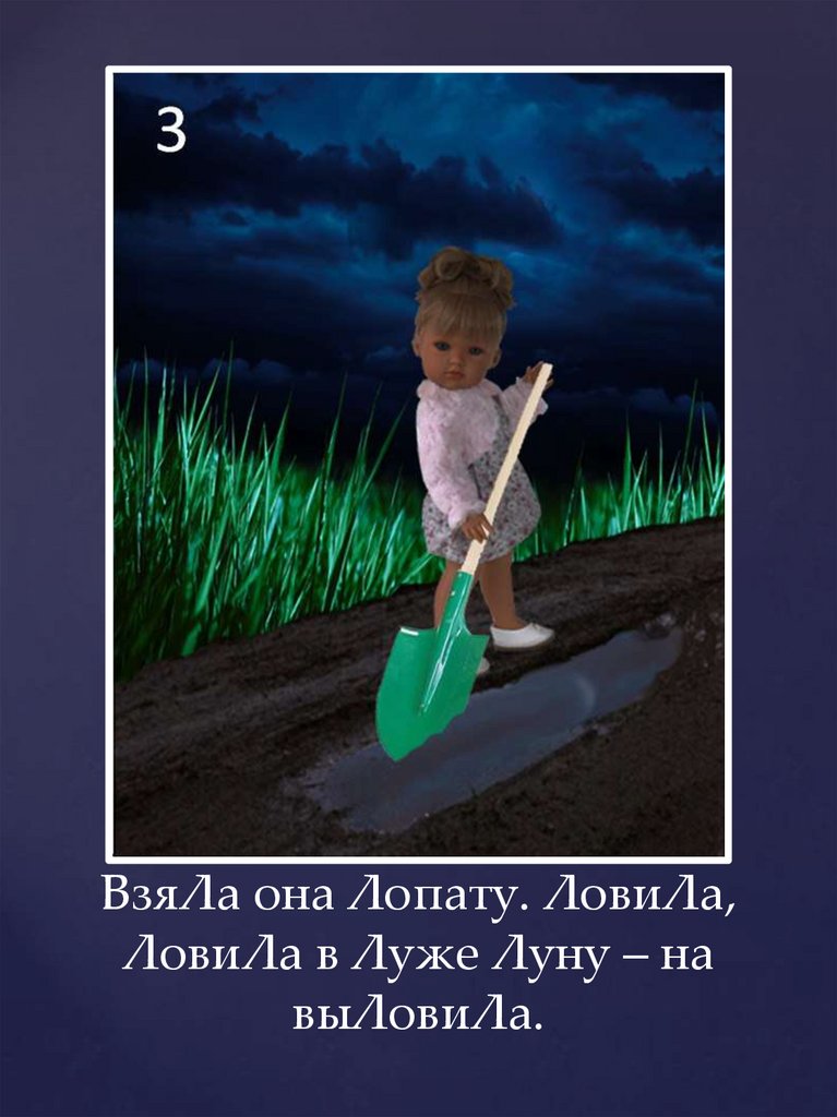 ВзяЛа она Лопату. ЛовиЛа,ЛовиЛа в Луже Луну – на