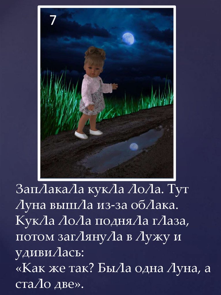 «Луна в Луже пЛавает»,подумаЛа кукЛа ЛоЛа.