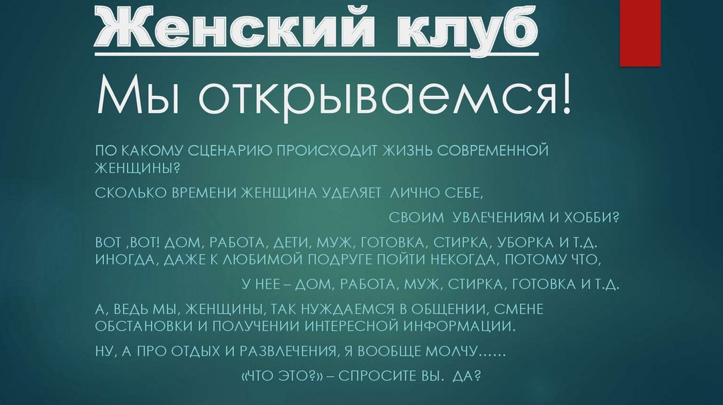 1. Женский клуб Мы открываемся!