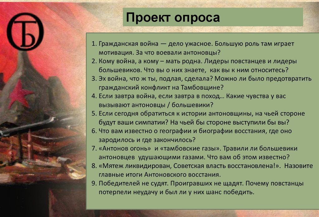 Проект опроса1. Гражданская война — дело ужасное. Большую роль там играет