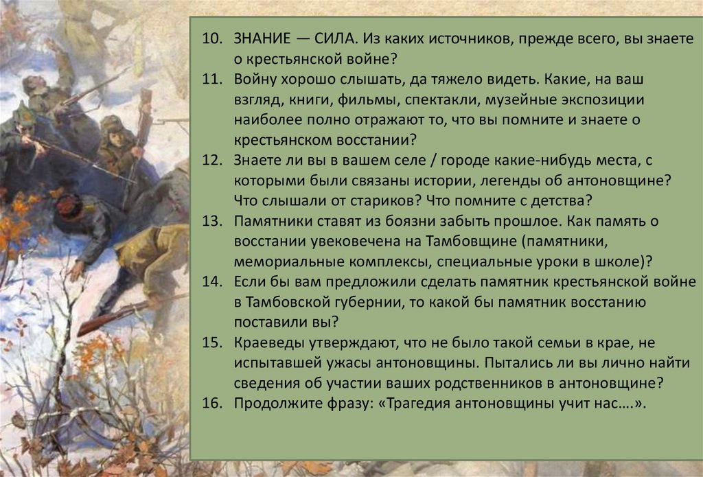 16. Продолжите фразу: «Трагедия антоновщины учит нас….».