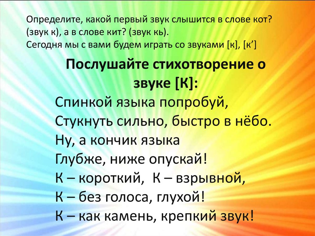 услышите звук [к], хлопните в ладоши: