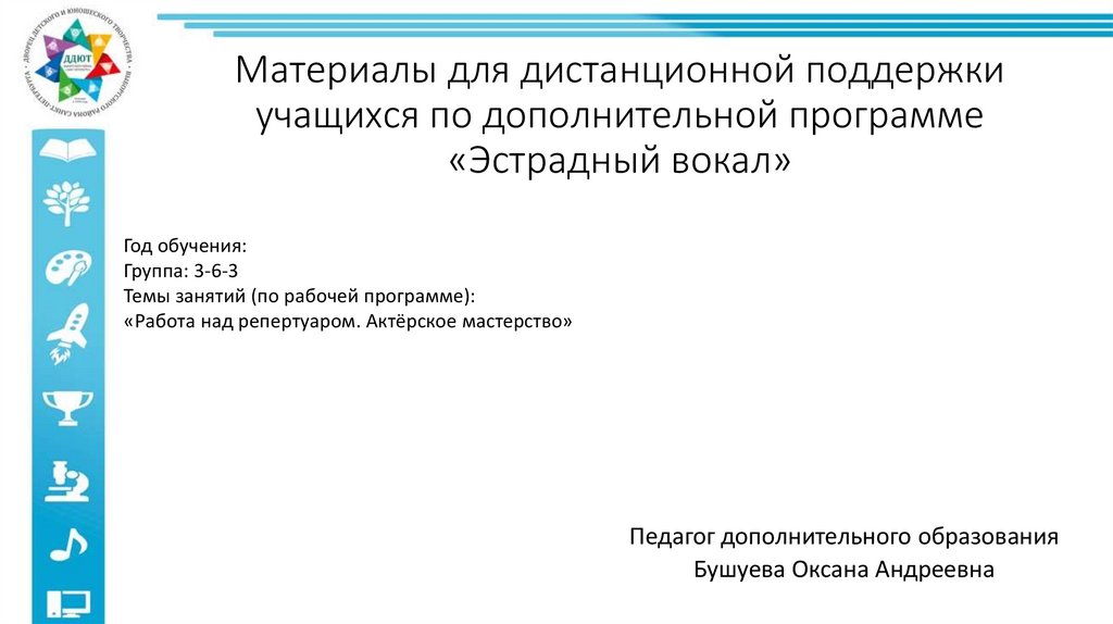 1. Материалы для дистанционной поддержки учащихся по дополнительной программе «Эстрадный вокал»