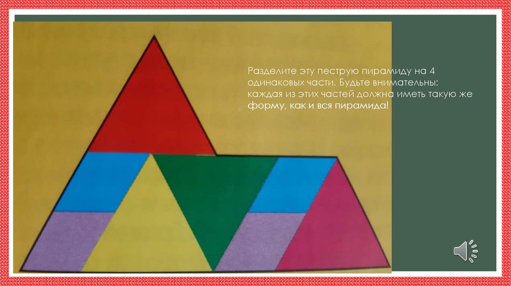 Разделите эту пеструю пирамиду на 4одинаковых части. Будьте внимательны: