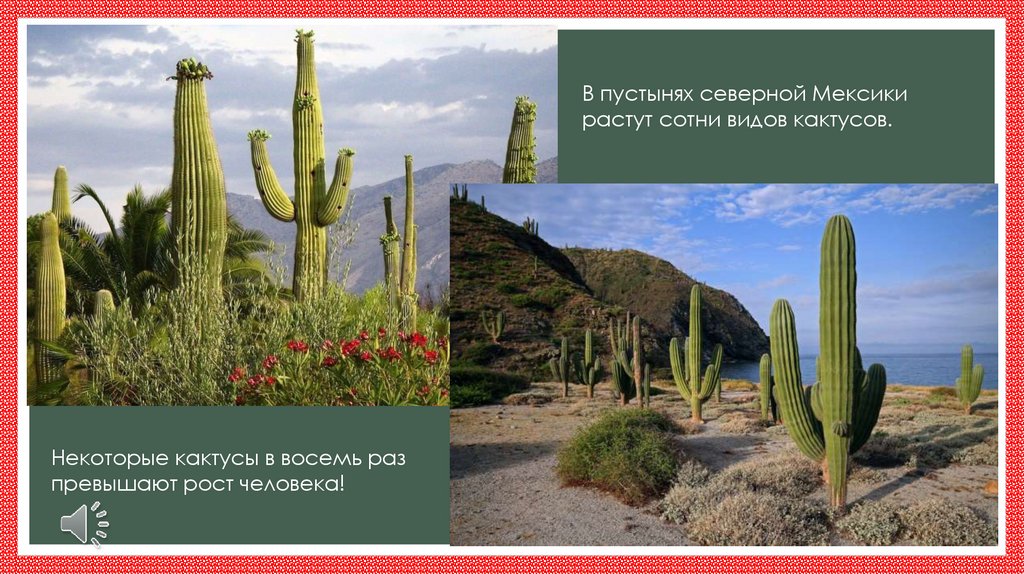 В пустынях северной Мексикирастут сотни видов кактусов.