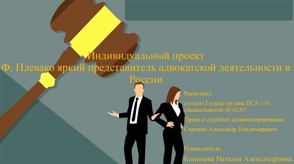 1. Индивидуальный проект Ф. Плевако яркий представитель адвокатской деятельности в России