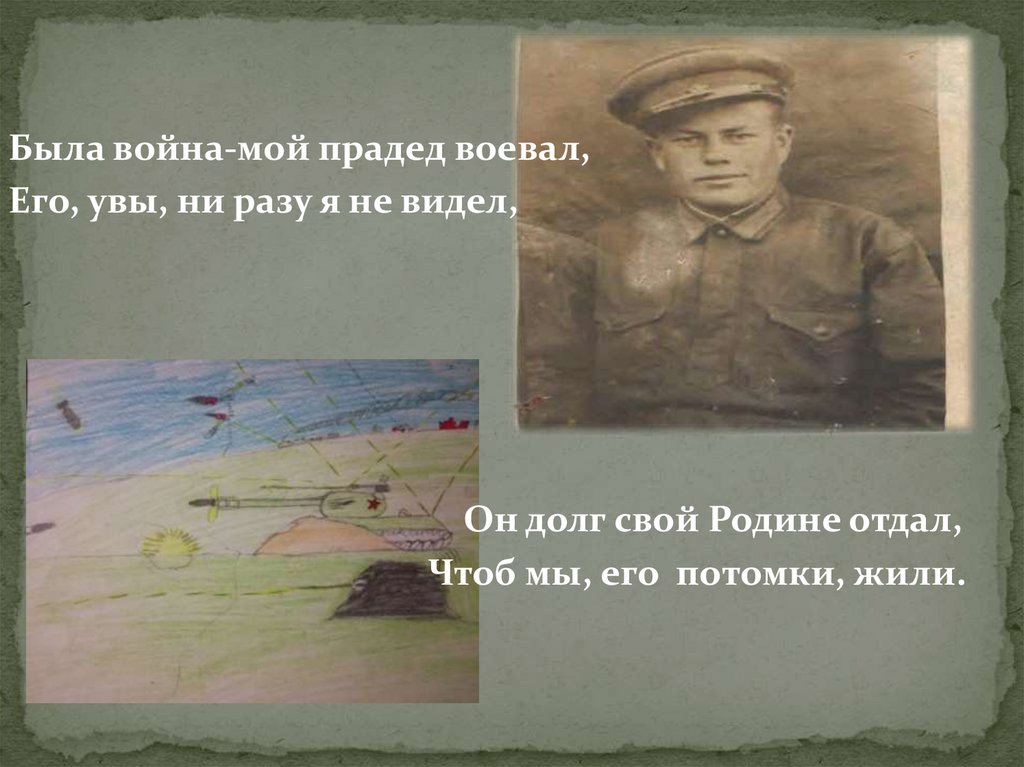 Была война-мой прадед воевал,Его, увы, ни разу я не видел,