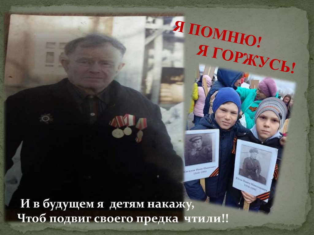 И в будущем я детям накажу,Чтоб подвиг своего предка чтили!!