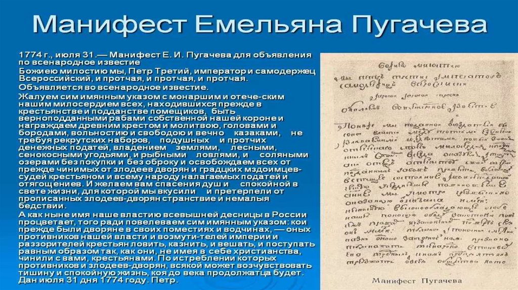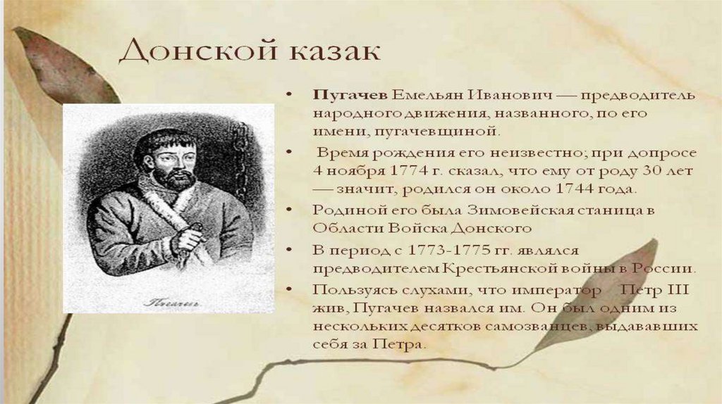 Емельян Иванович Пугачев (1742-1775) и крестьянское восстание