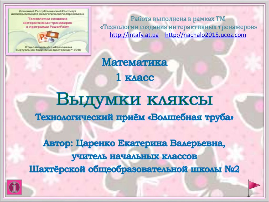 1. Работа выполнена в рамках ТМ «Технологии создания интерактивных тренажеров» http://intafy.at.ua http://nachalo2015.ucoz.com