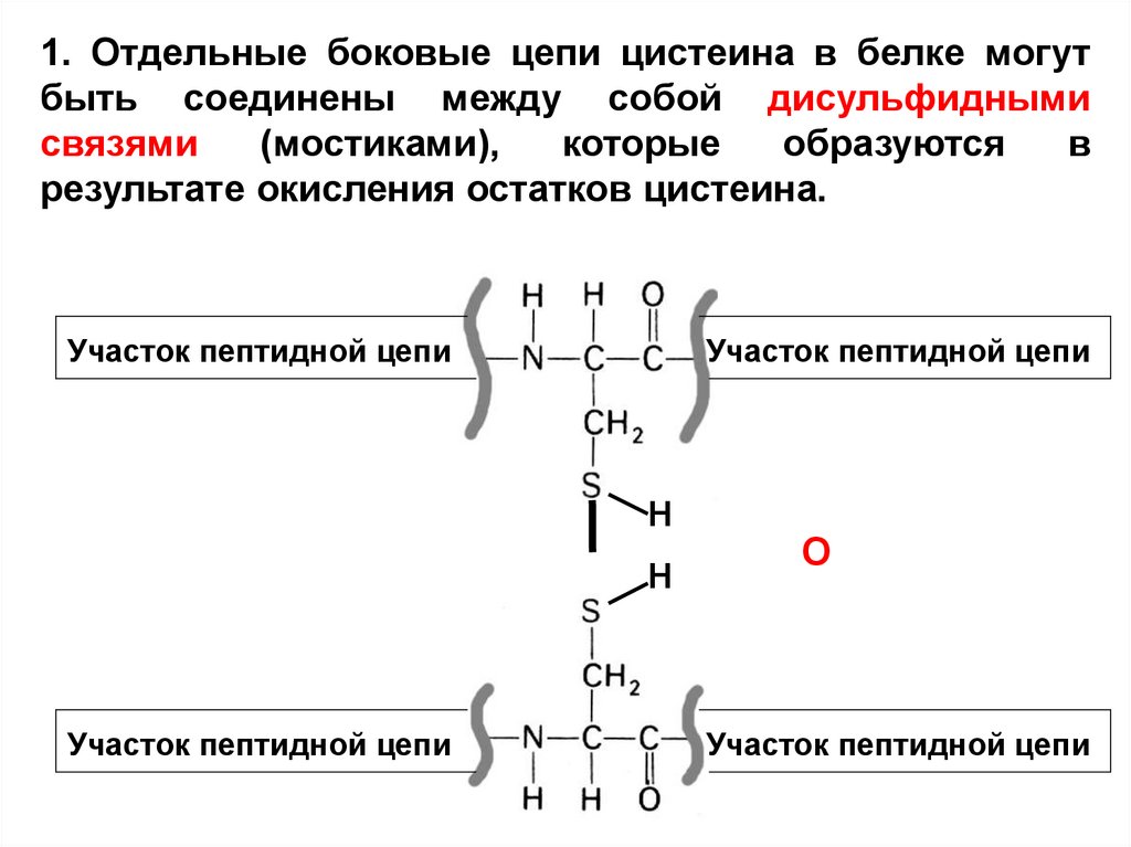 1. Отдельные боковые цепи цистеина в белке могутбыть соединены между собой дисульфидными
