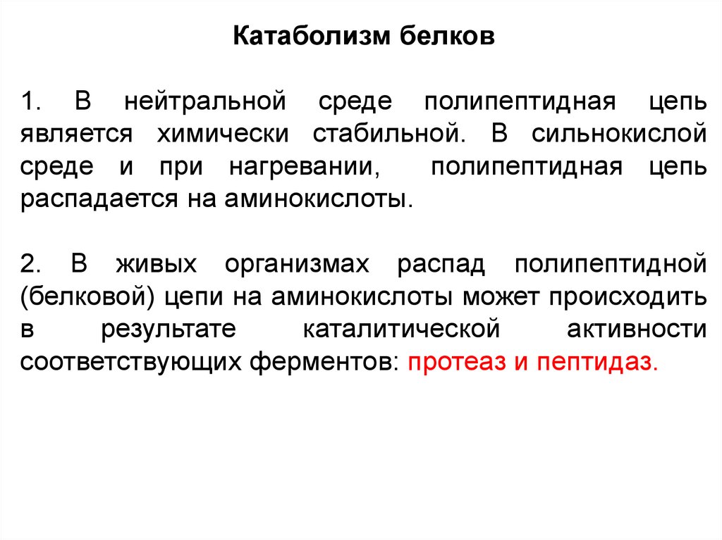 Катаболизм белков1. В нейтральной среде полипептидная цепь