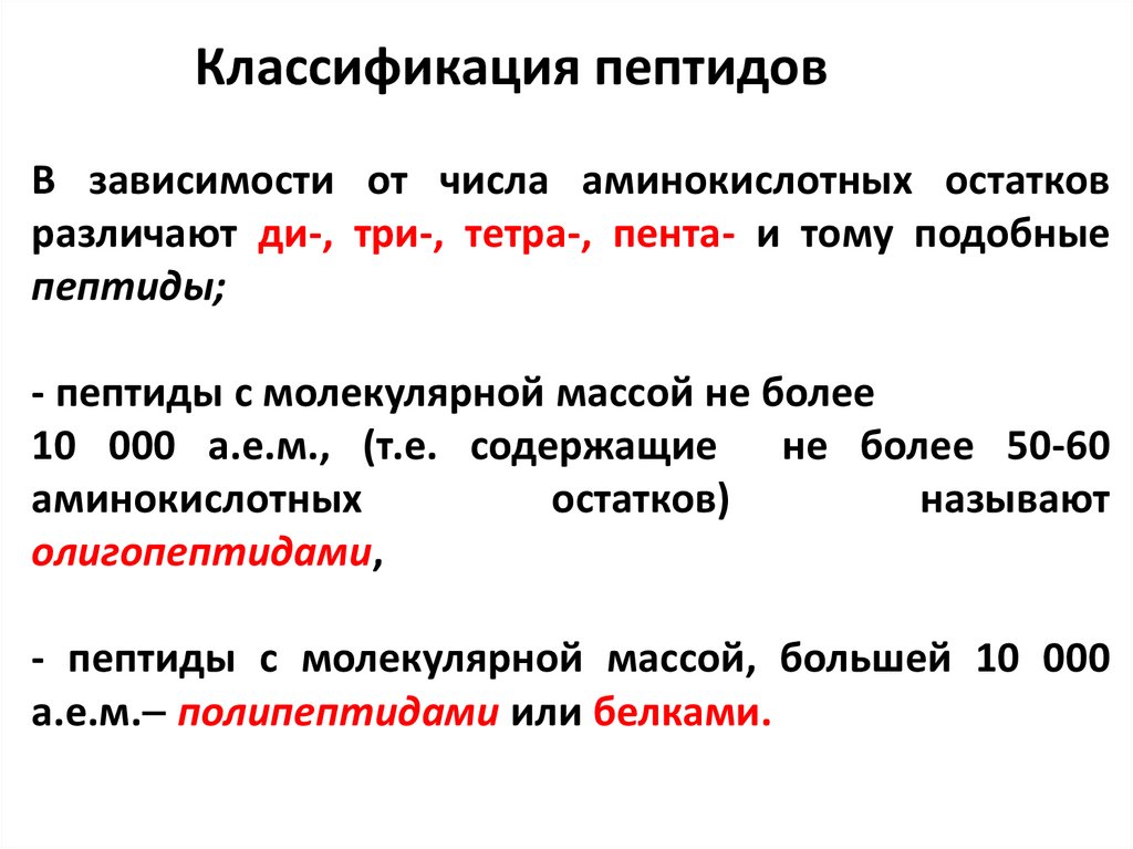 Классификация пептидовВ зависимости от числа аминокислотных остатков