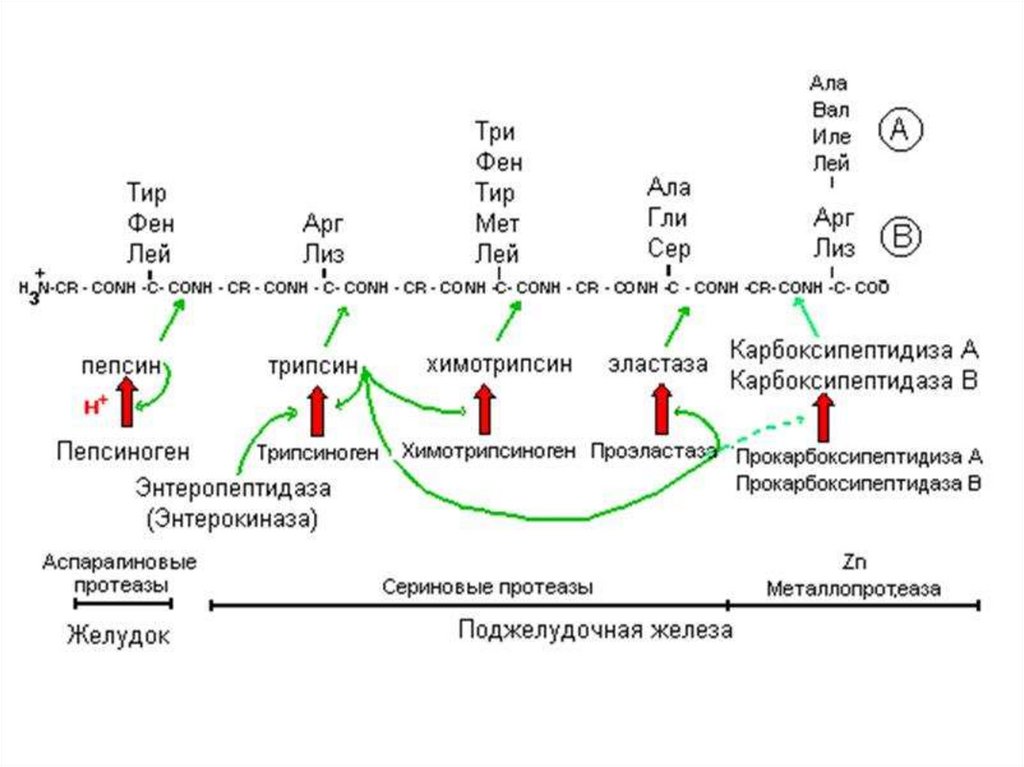 цепи: аминопептидазы — с N-конца, карбоксипептидазы — с Сконца.