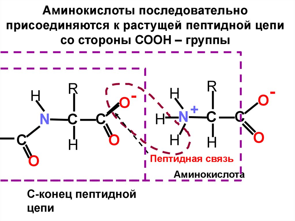 Аминокислоты последовательноприсоединяются к растущей пептидной цепи