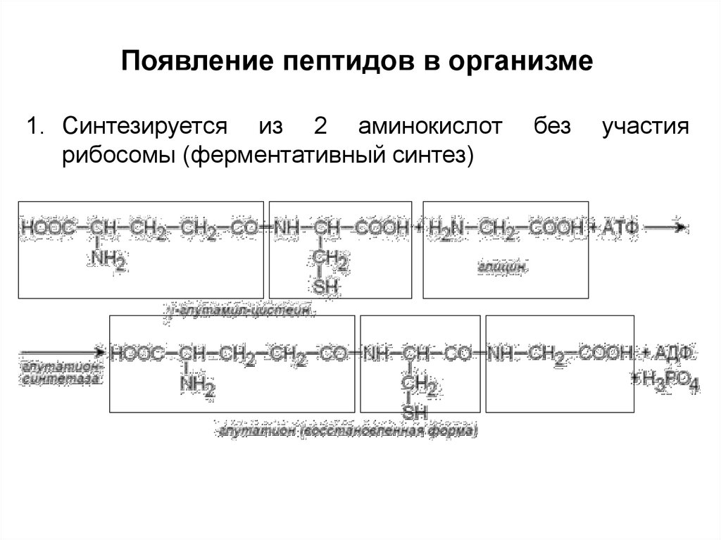 Появление пептидов в организме1. Синтезируется из 2 аминокислот