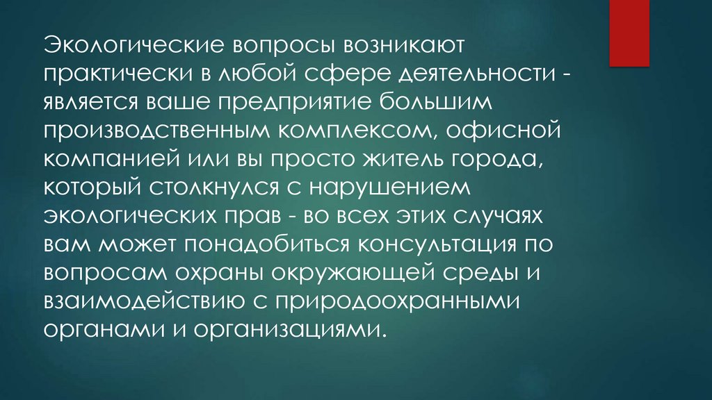Экологические вопросы возникаютпрактически в любой сфере деятельности является ваше предприятие большим