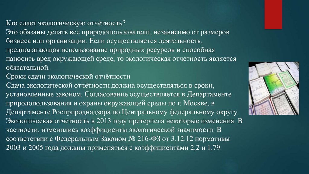 Кто сдает экологическую отчётность?Это обязаны делать все природопользователи, независимо от размеров
