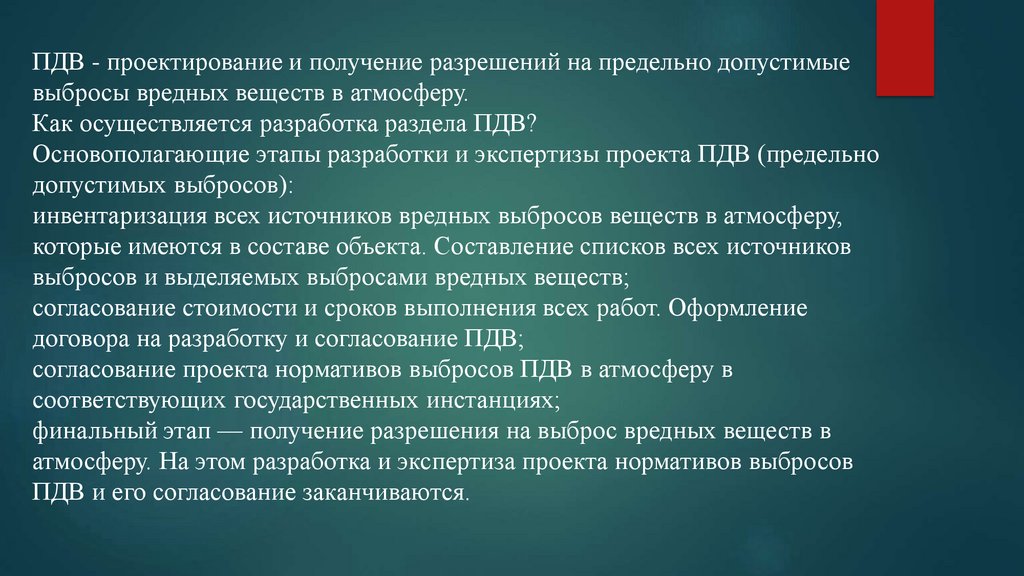 Основополагающие этапы разработки и экспертизы проекта ПДВ (предельно