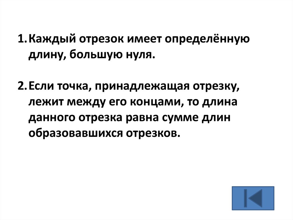 1.Каждый отрезок имеет определённуюдлину, большую нуля.