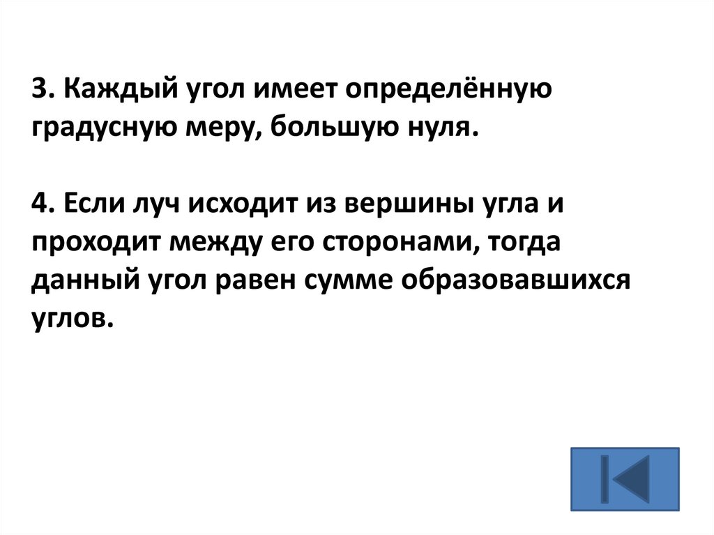 3. Каждый угол имеет определённуюградусную меру, большую нуля.