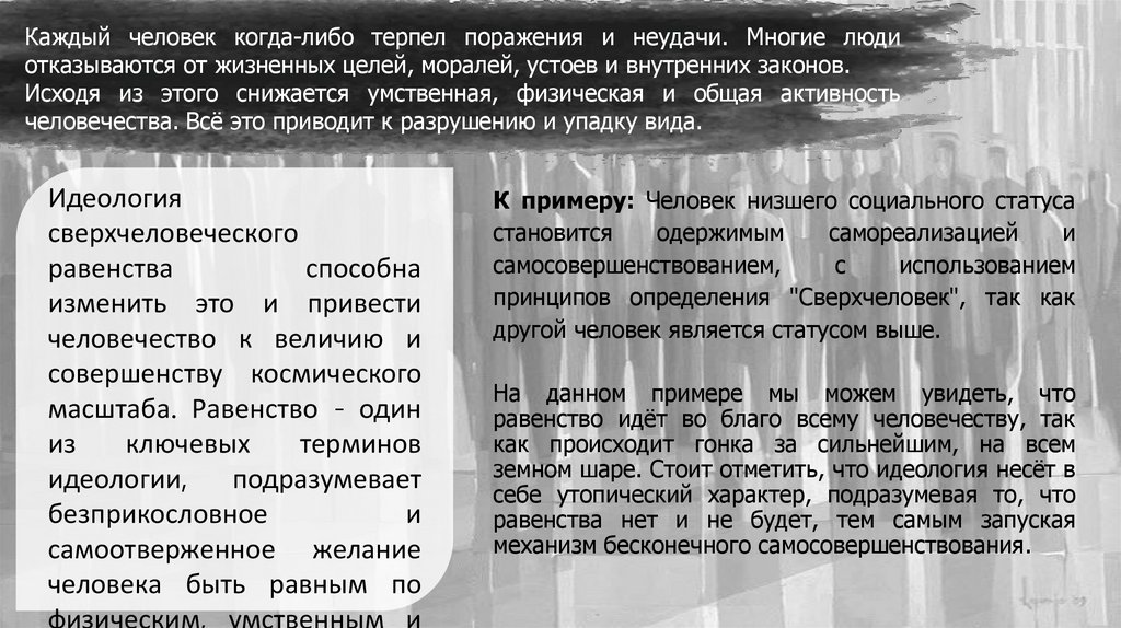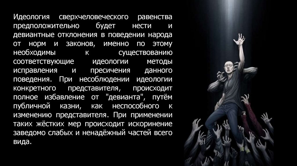 7. Идеология сверхчеловеческого равенства призвана искоренить любые проявления деградации, но в первую очередь деградации