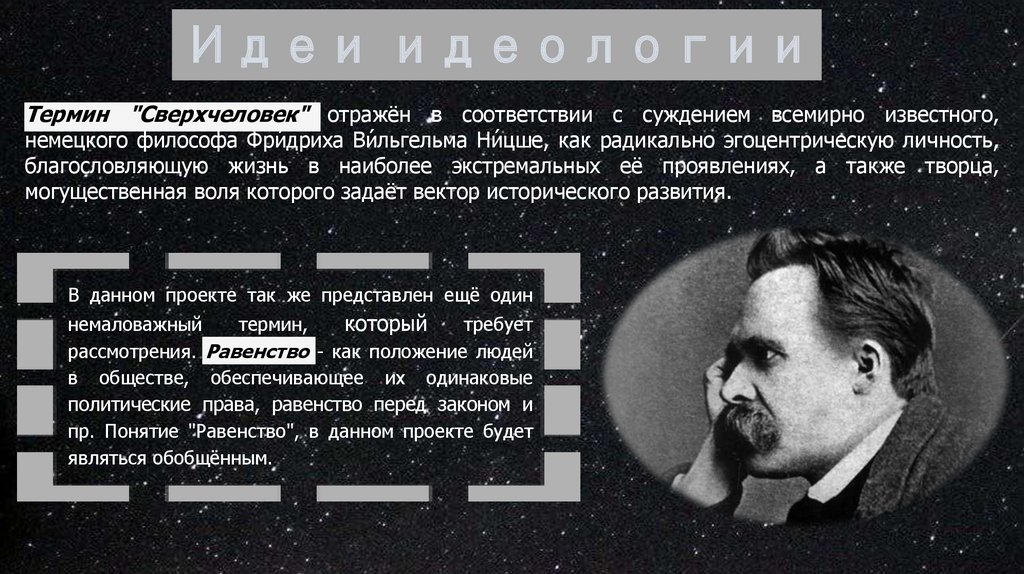 Идеи идеологииТермин "Сверхчеловек" отражён в соответствии с суждением всемирно известного,