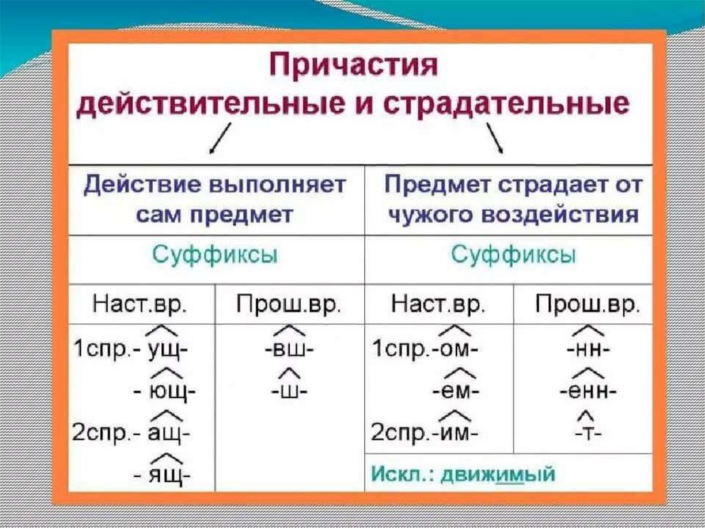 Действительные и страдательные причастия. Суффиксы действительных и страдательных причастий