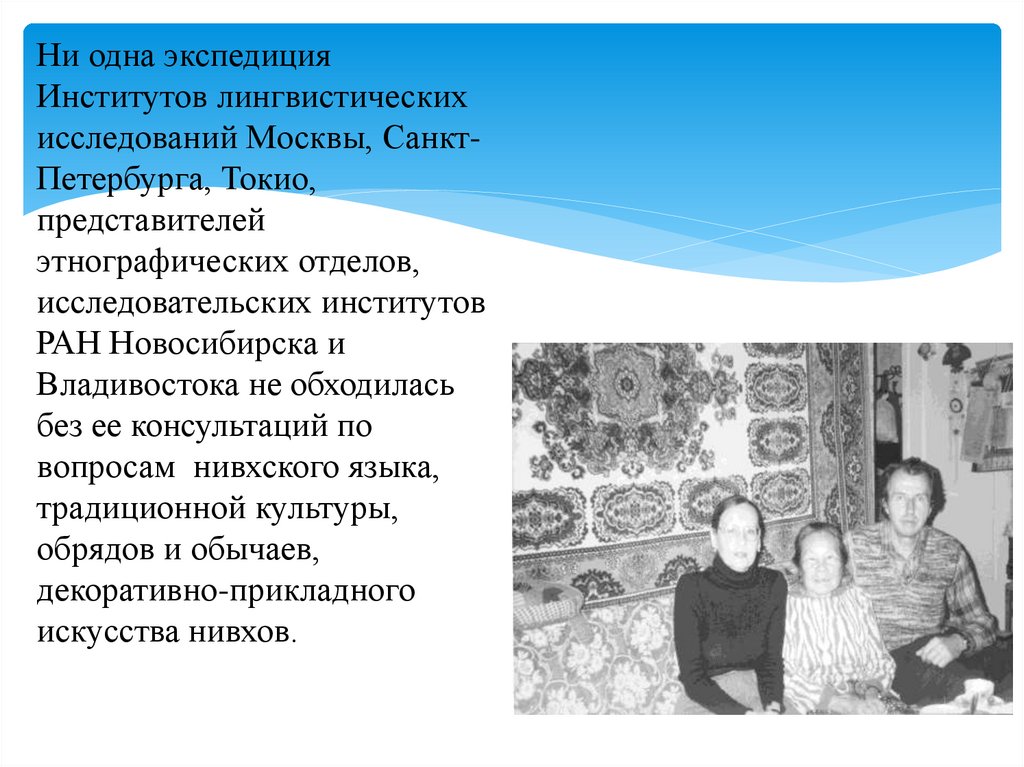 ее ценили за знание нивхской культуры, обычаев, обрядов, за