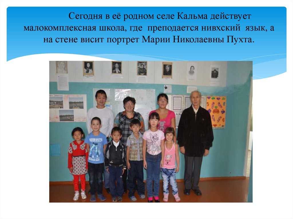 Сегодня в её родном селе Кальма действуетмалокомплексная школа, где преподается нивхский язык, а