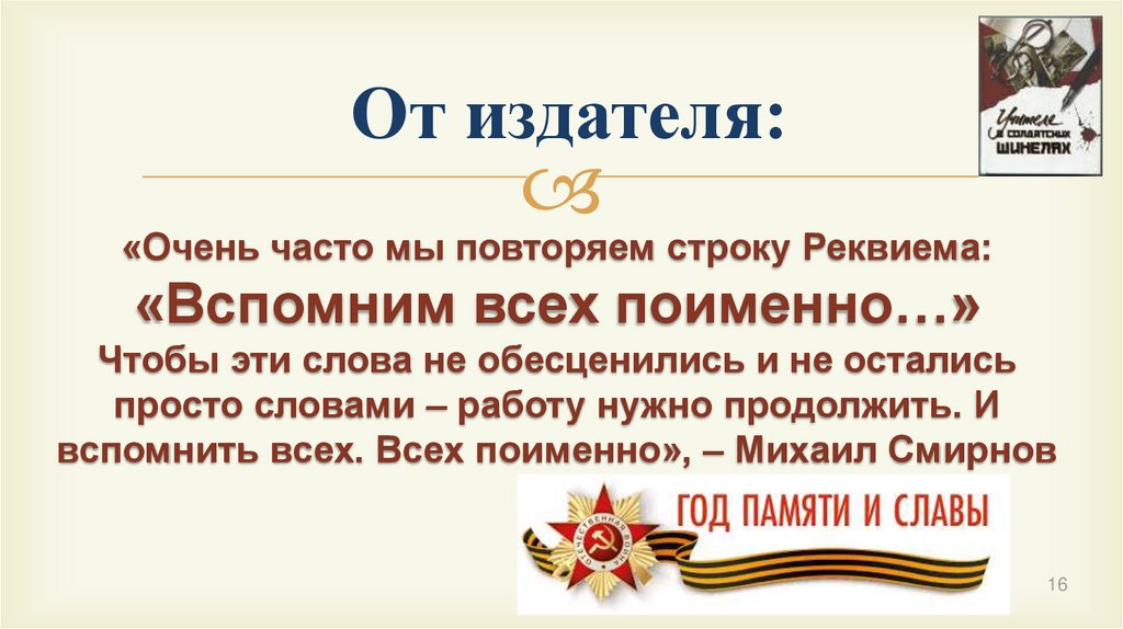 вспомнить всех. Всех поименно», – Михаил Смирнов
