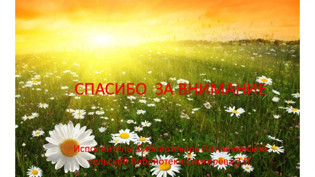 Исполнитель: библиотекарь Поташкинской