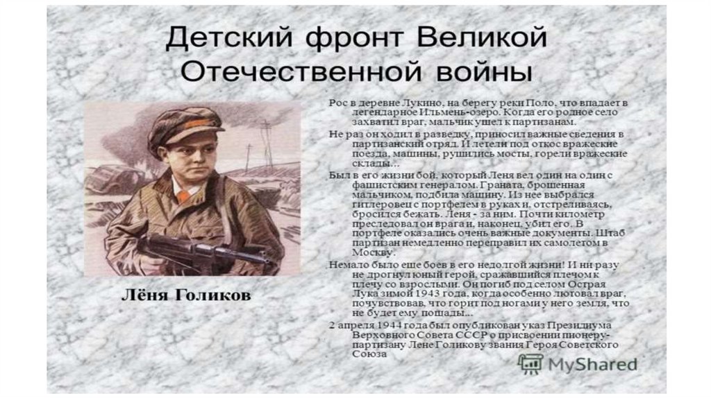 Детский фронт Великой Отечественной войны