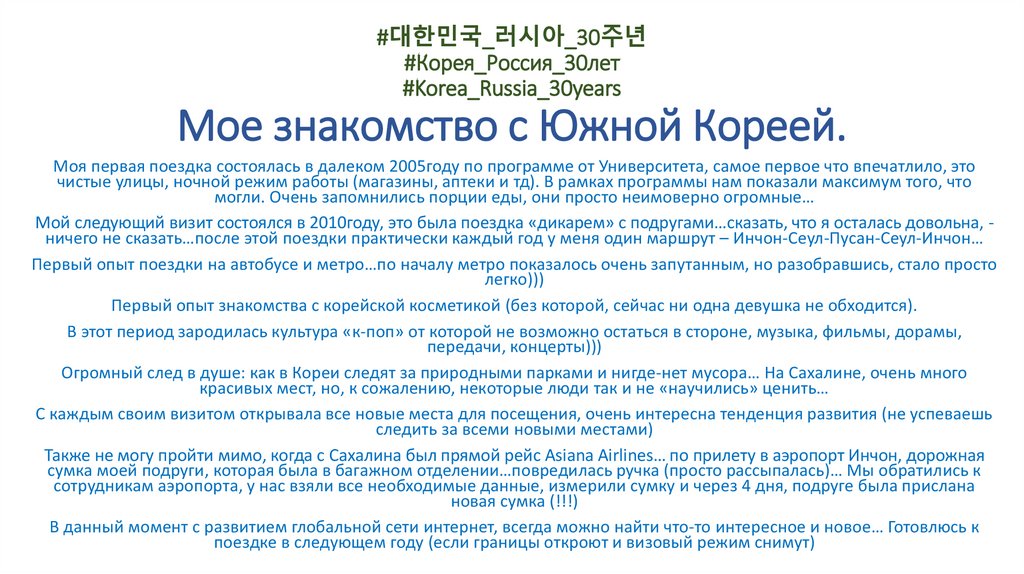 1. #대한민국_러시아_30주년 #Корея_Россия_30лет #Korea_Russia_30years Мое знакомство с Южной Кореей.