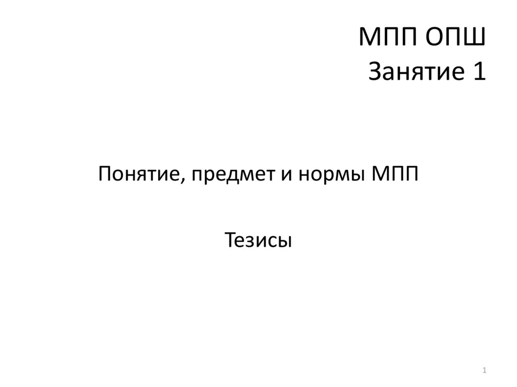 Понятие, предмет и нормы МПП. Тезисы. Занятие 1