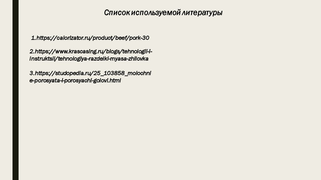 Список используемой литературы1.https://calorizator.ru/product/beef/pork-30