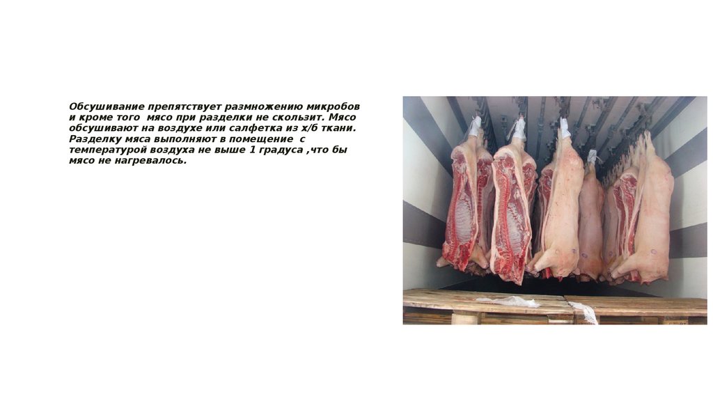 Обсушивание препятствует размножению микробови кроме того мясо при разделки не скользит. Мясо