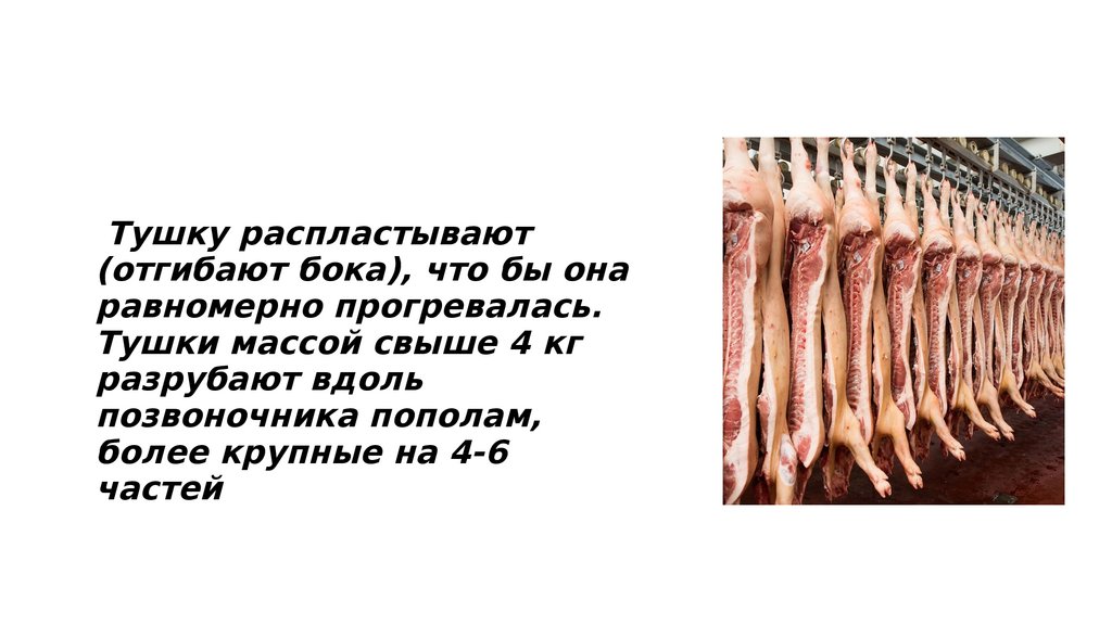 Тушку распластывают(отгибают бока), что бы она