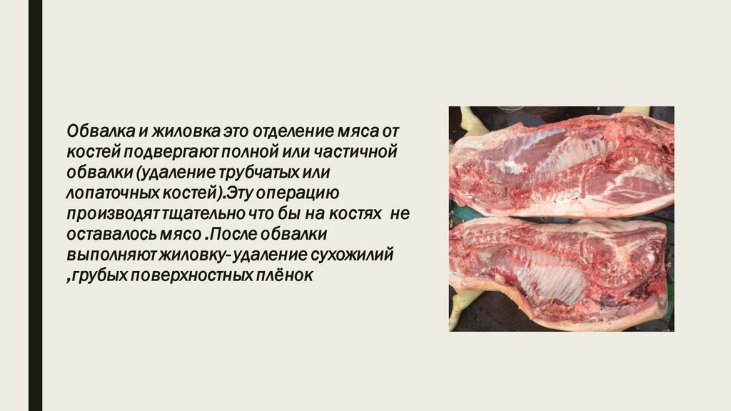Обвалка и жиловка это отделение мяса откостей подвергают полной или частичной
