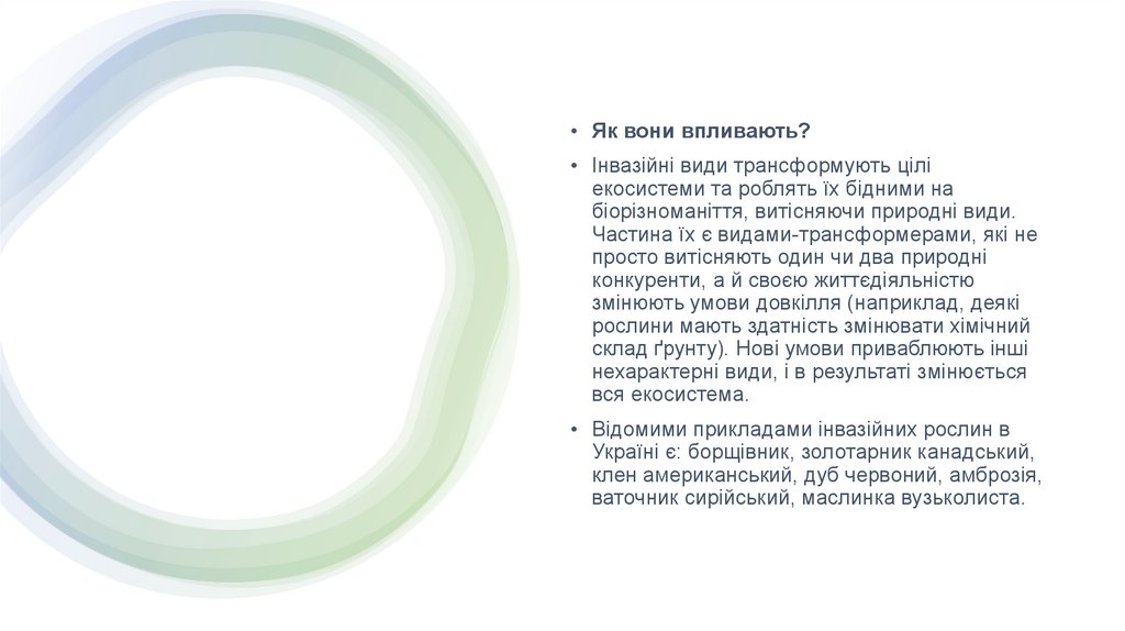 • Як вони впливають?• Інвазійні види трансформують цілі