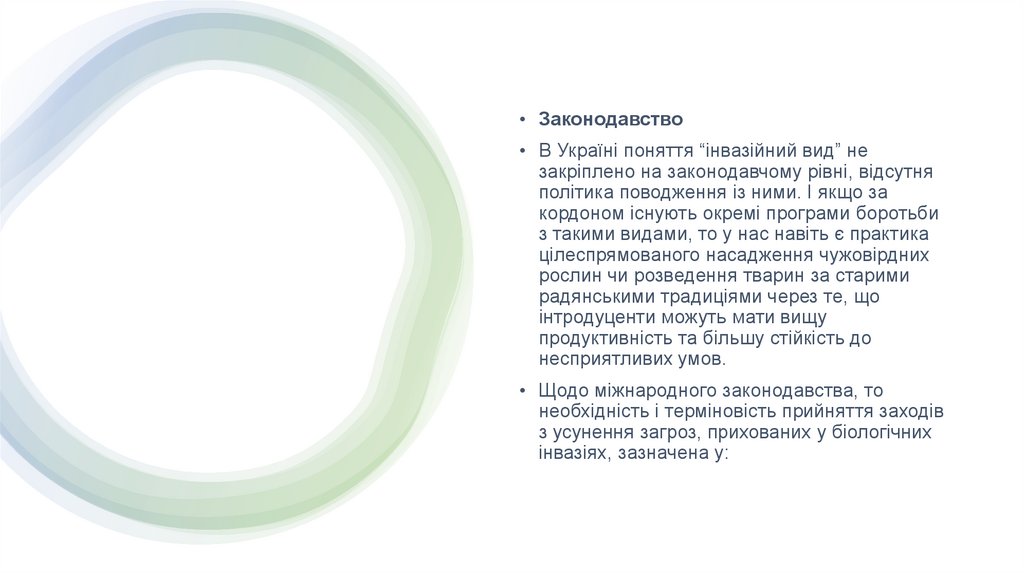 • Законодавство• В Україні поняття “інвазійний вид” не