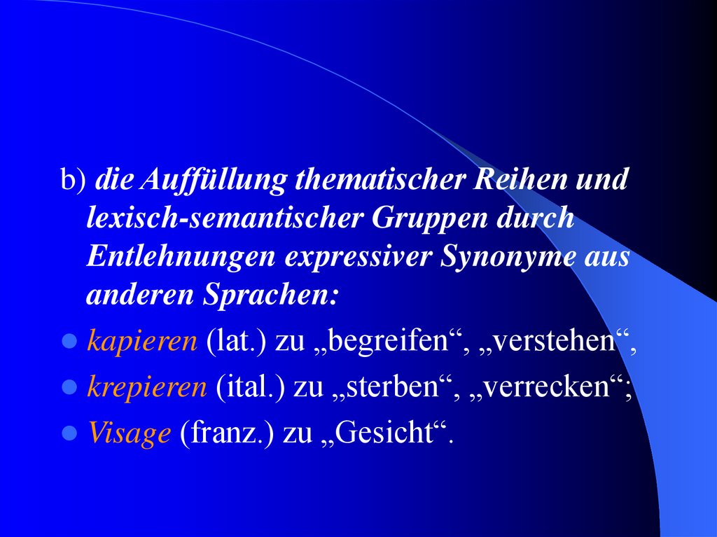 d) die Entlehnungen von Fremdwörternzur terminologischen Verwendung :