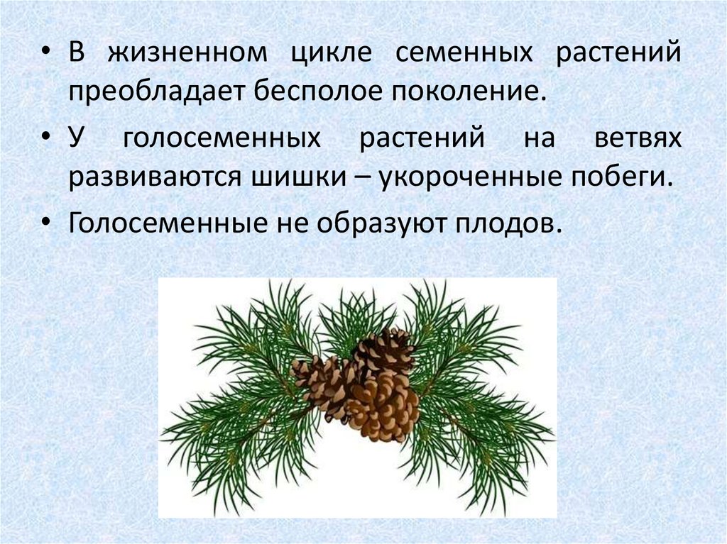 • В жизненном цикле семенных растенийпреобладает бесполое поколение.