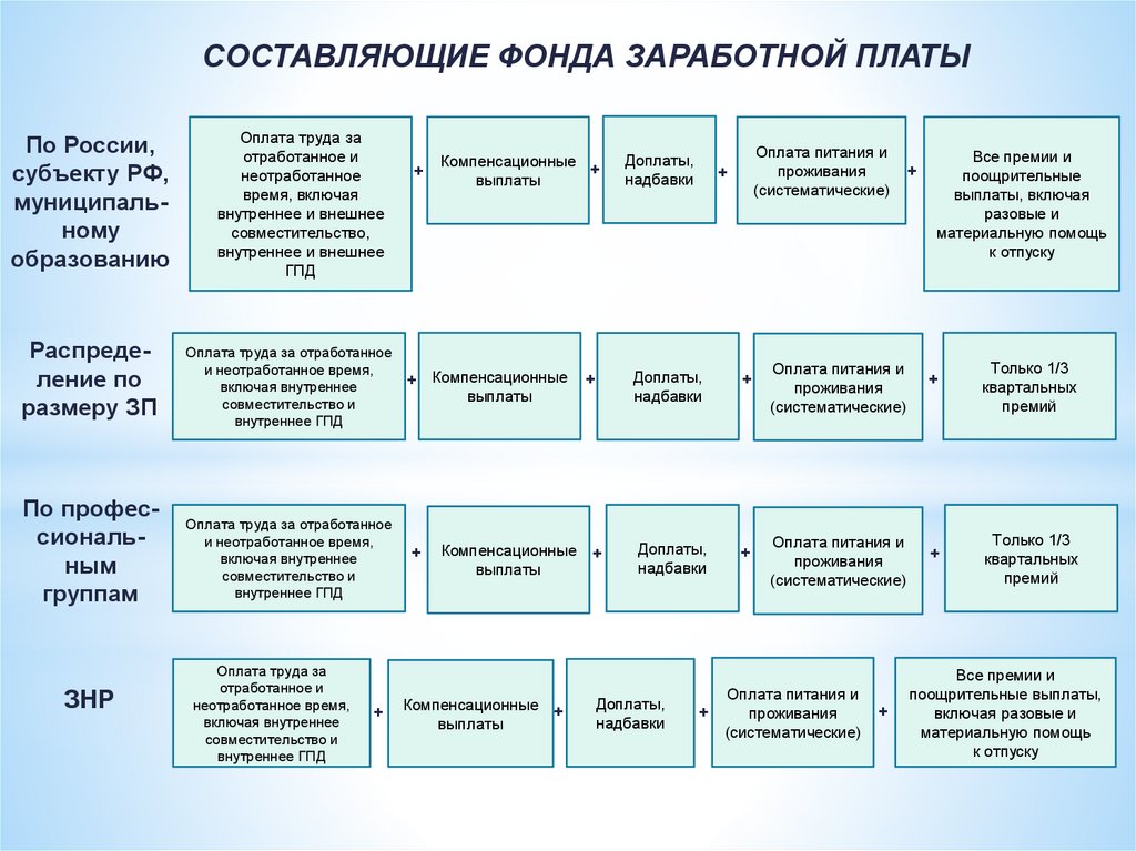 - по категориям персонала (руководители, специалисты, другие служащие, рабочие)
