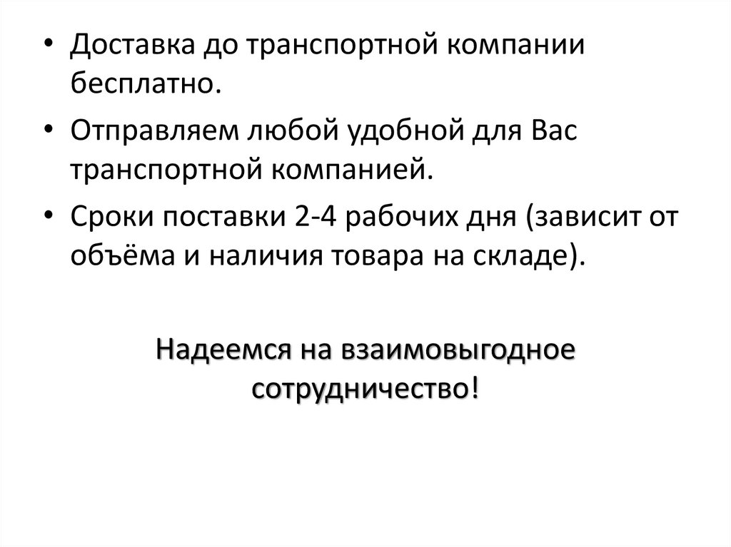 • Сроки поставки 2-4 рабочих дня (зависит от