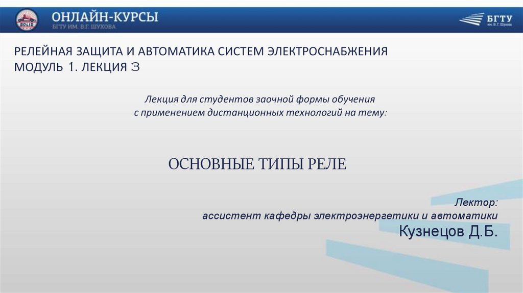 РЕЛЕЙНАЯ ЗАЩИТА И АВТОМАТИКА СИСТЕМ ЭЛЕКТРОСНАБЖЕНИЯМОДУЛЬ 1. ЛЕКЦИЯ 3