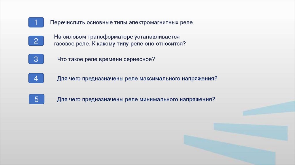 1Перечислить основные типы электромагнитных реле