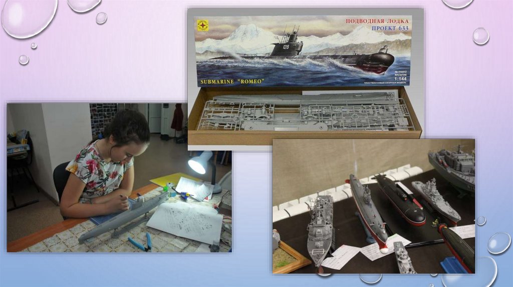 14. Для своей презентации я выбрала модель подводной лодки пр.633 «Ромео» масштаб 1:144. Мне понравилась эта модель, потому что у