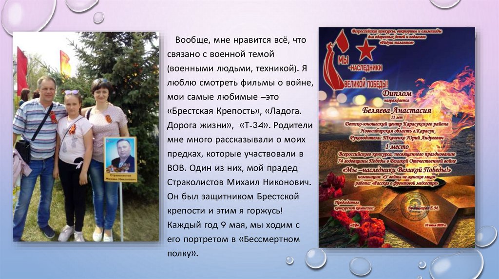 в меня верил ипомогал мне в начале и сейчас продолжает интересоваться моим хобби.