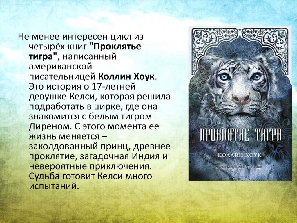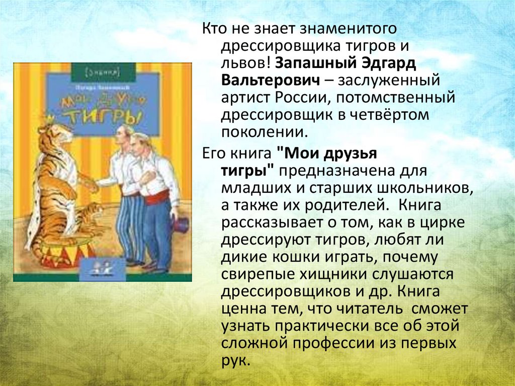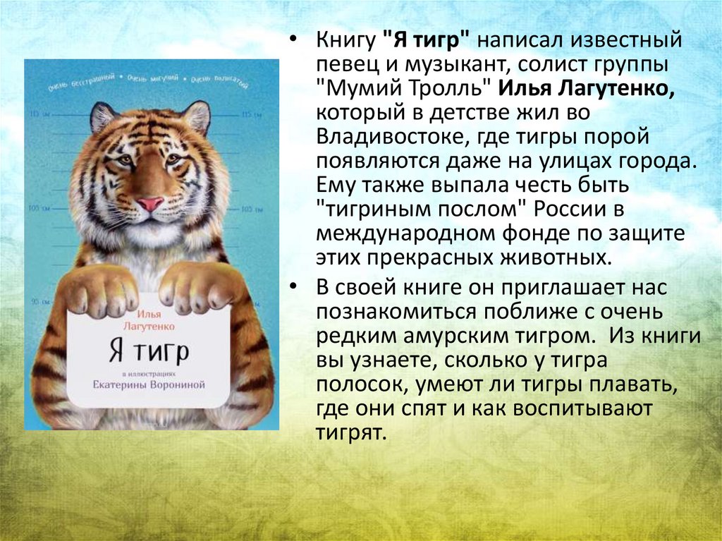 • Книгу "Я тигр" написал известныйпевец и музыкант, солист группы